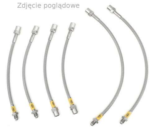 - przewody hamulcowe o odpowiedniej długości, dedykowane do wybranego modelu z zakutymi końcówkami ze stali nierdzewnej