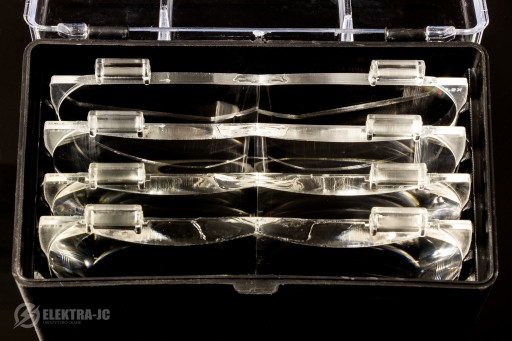 Lupa posiada 5 różnych i wymiennych szkieł powiększających, zapakowane są w specjalnym pudełku ułatwiający przechowanie.