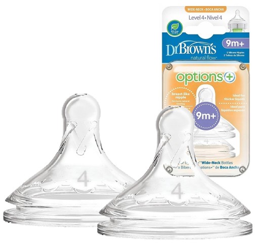 Smoczek Dr Brown′s Poziom 4, zapewnia spójny, naturalny, przepływ. Kształtem przypomina pierś matki. Wykonany z najwyższej jakości miękkiego silikonu. W połączeniu z systemem antykolkowym powoduje bezciśnieniowe karmienie, które zmniejsza występowanie kolek, odbijania oraz gazów. Smoczek pasuje do butelki Dr Brown′s Options+ z szeroka szyjka.W opakowaniu znajdują się 2 smoczki. Można myć w zmywarce na górnej półce. Przeznaczony dla dzieci od pierwszego dnia życia.