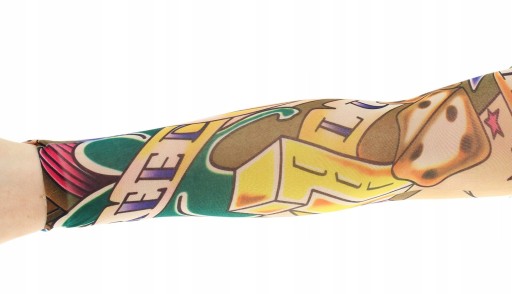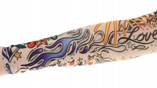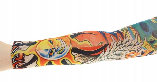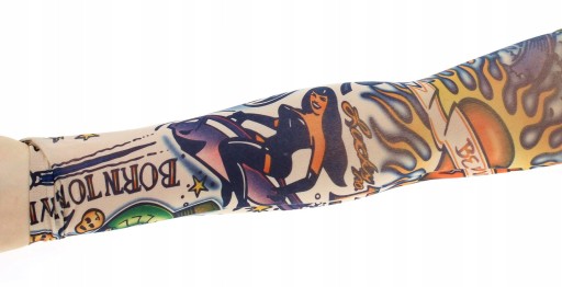 Jest to rękaw z imitacją tatuaży. Wykonany z cienkiego i elastycznego materiału. Nadruk i kolory wyraziste.