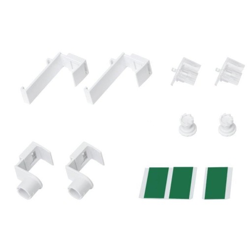 - Zestaw montażowy - w kolorze białym - dolne i górne zaczepy do standardowych okien (jeśli okno ma wywietrznik lub jest nieotwierane spójrz niżej)