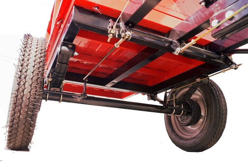 + Koła pneumatyczne gumowe + resory piórowe + solidna STALOWA konstrukcja.
