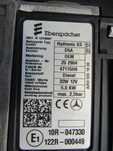 Вебасто MERCEDES W213 W253 W257 GLC A2535001800