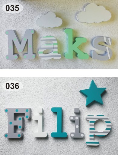 Literki malowane są ręcznie farbami akrylowymi, zdobione różnymi motywami co daje super efekt końcowy. Doskonale nadają się jako oryginalna i efektowna ozdoba każdego wnętrza jak i idealny prezent dla pociechy i rodziców. Literki można przykleić do ściany za pomocą taśmy dwustronnej piankowej lub kleju montażowego do styropianu np. Fixall