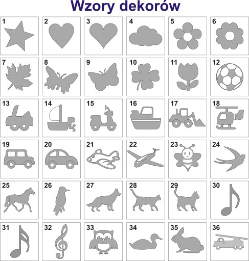 PRZY ZAMÓWIENIU PROSZĘ PODAĆ NP. NR. WZORU, IMIĘ DZIECKA, WYBRAĆ DEKOR I PODAĆ KOLORYSTYKĘ