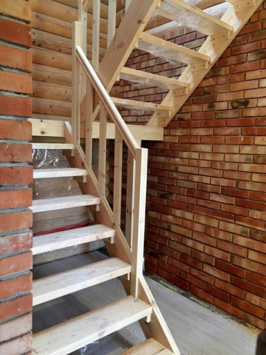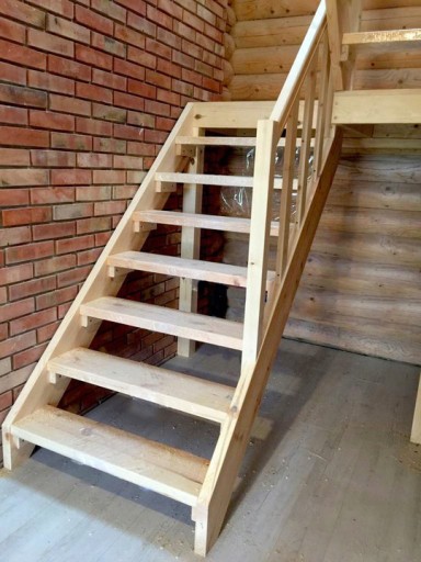 Zarówno stopnie, jak i elementy konstrukcji, wykonane są z najwyższej jakości drewna iglastego (świerk/sosna). Drewno suszone jest komorowo.