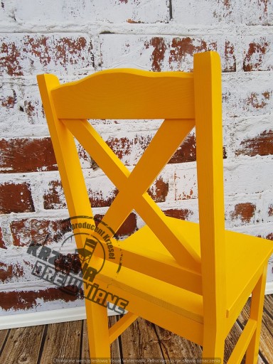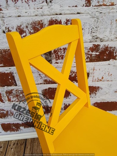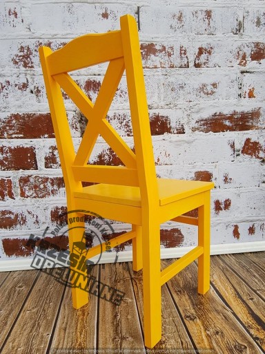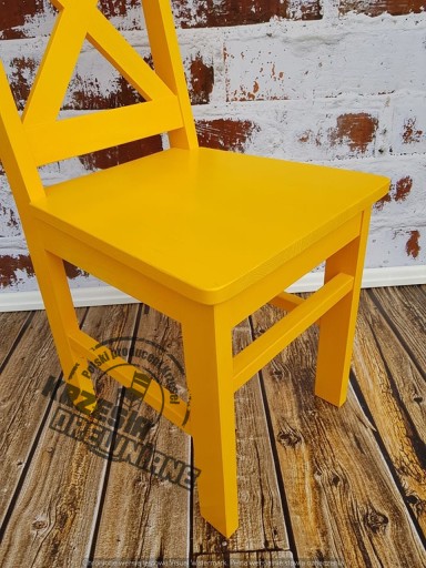 Wszystkie krzesła są wykonane z dobrej jakości drewna Sosnowego. Standardowe wybarwienie krzeseł jest w kolorze wosku Miodowego, natomiast każdy inny kolor można wybrać z gamy kolorów RAL jaką dysponujemy bądź zasugerować własną kolorystykę.