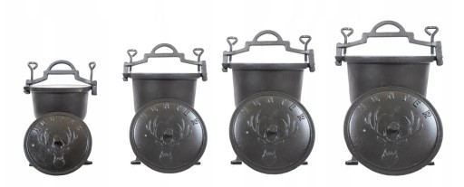 Oryginalny kociołek, wykonany z najwyższej jakości stopu żeliwa odpornego na najwyższe temperatury. Kociołek posiada specjalny odpowietrznik w pokrywie, który reguluje ciśnienie wewnątrz kociołka, przez co jest on w 100% bezpieczny. Kociołek może stać bezpośrednio w ognisku, a dzięki poręcznemu uchwytowi może być zawieszony również nad ogniskiem. Produkt posiada również odkręcane nóżki, przez co kociołek można umieścić w kominku lub bezpośrednio w palenisku.