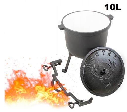 ОХОТНИЧНЫЙ Эмалированный казан, чугун, для разожженного костра, 10 литров