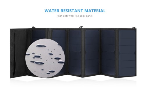 Pokrowiec: panel słoneczny jest pokryty wytrzymałym włóknem poliestrowym, dlatego można ładować urządzenia i cieszyć się światłem słonecznym w pobliżu basenu lub na plaży bez żadnych obaw.