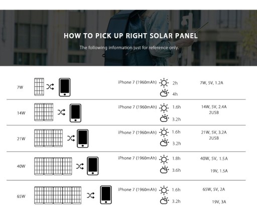 Jeśli nie jesteś pewien jak dobrać ładowarkę koniecznie przeczytaj załączoną na dole, w zakładce: " Dodatkowe informacje" instrukcję do ładowarki solarnej.