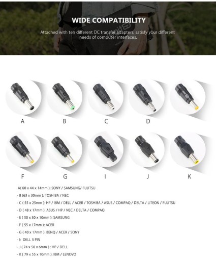 Wyposażony w dziesięć różnych adapterów DC, GBTIGER spełnia Twoje różne wymagania interfejsów komputerowych.