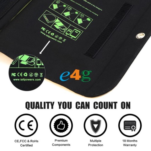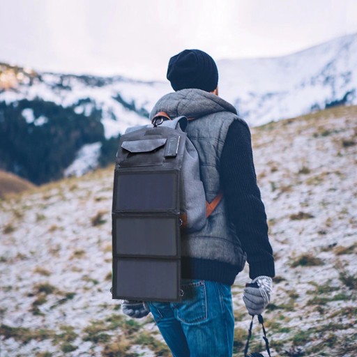 Przenośna, składana na 4 i lekka obudowa sprawia, że bardzo łatwo zapakować ją do plecaka. Widoczne otwory na pętle montażowe rozmieszczone są na krawędzi panelu w celu łatwego mocowania do plecaków, na rower, namiot itp.