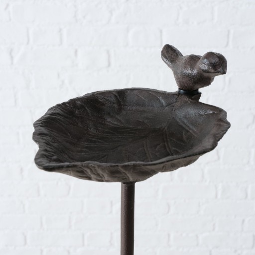 Poidło dla ptaków w kształcie liścia z elementem ptaszków wykonane z żeliwa. Poidło będzie bardzo elegancką dekoracją każdego ogrodu, tarasu, balkonu. Nietuzinkowy wygląd sprawi, że poidło będzie obiektem podziwu. Wykonane z żeliwa, jest odporne na wszelkie warunki atmosferyczne, będzie służyć przez długie lata. Posiada bolec do wbicia z ziemię.