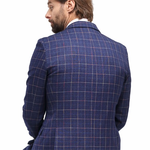 Do marynarki można dokupić spodnie z tej samej tkaniny oraz kamizelkę i skomponować w całość jako zestaw.