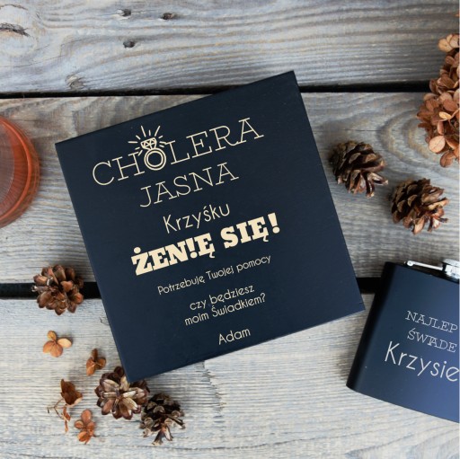 - drewnianą skrzyneczkę z grawerem
