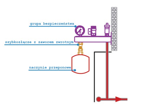 • szybkozłącze do podłączenia naczynia przeponowego z grupą bezpieczeństwa
