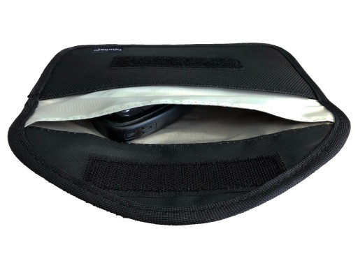 Instrukcja: chroniony przedmiot należy umieść w kieszeni wyłożonej srebrno szarym materiałem. Druga kieszeń nie zapewnia ochrony lecz stanowi dodatkowe miejsce np na prawo jazdy, klucze od domu, pieniądze itp.