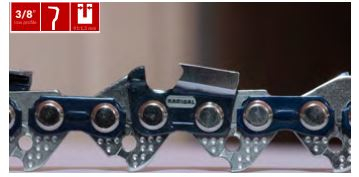 Budowa łańcucha powoduje ograniczenie wibracji na uchwytach pilarki. Największą zaletą łańcucha jest dłuższy ząb tnący o 33%.