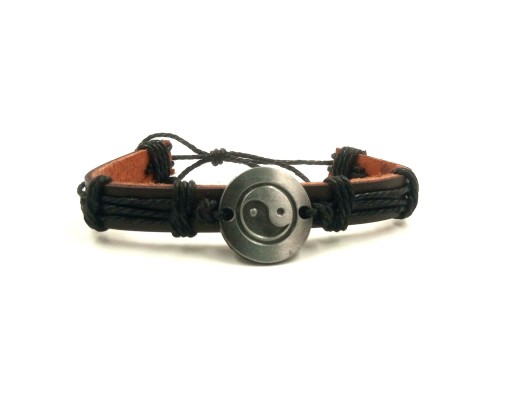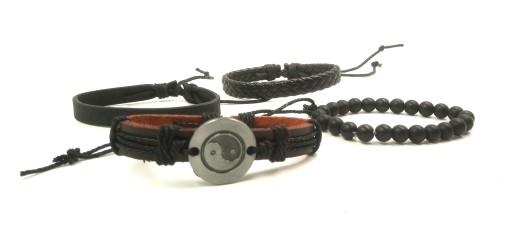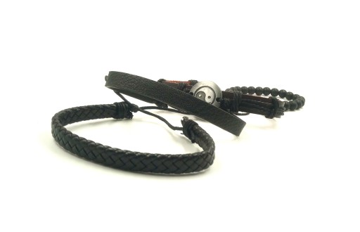 4 Bransoletki Męskie Bransoletka Yin Yang regulowane czarne Tao Azja skóra