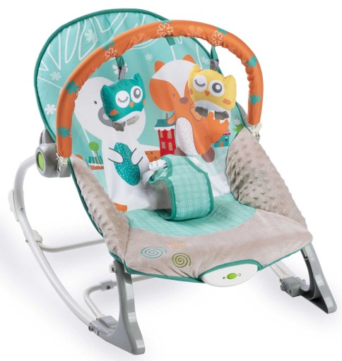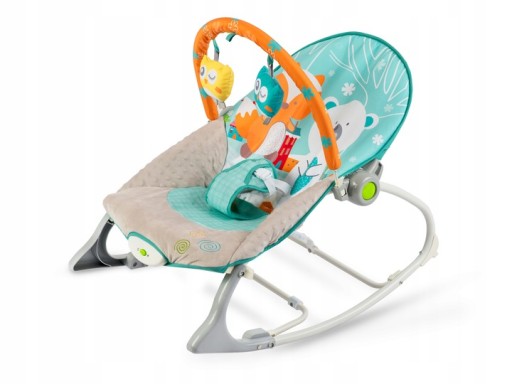 Leżaczek został wyposażony w zdejmowany pałąk z przyczepionymi szeleszczącymi zabawkami - sówką i wilczkiem oraz grzechotką. Zapewnią one Twojemu dziecku rozrywkę, podczas gdy Ty będziesz mógł odpocząć. Te wyjątkowe zabawki stymulują wzrok oraz rozwijają zmysł dotyku.