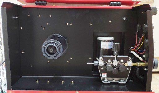 Profesjonalny podajnik drutu z dobrym, 4-rolkowym mechanizmem. Odpowiednie przeniesienie napędu zapewnia płynne podawanie drutu, a to pewność dobrych i stabilnych parametrów