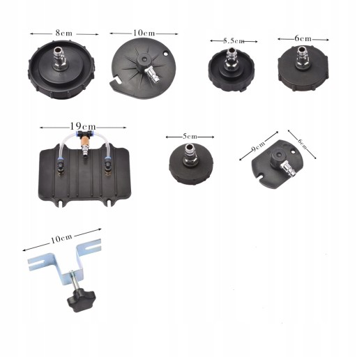 Zestaw korków plastikowych. 11 sztuk z uszczelkami gumowymi oraz stożkowy. Przydatny do urządzenia pneumatycznego do wymiany płynu hamulcowego do szybkozłaczki 1/4 cala.