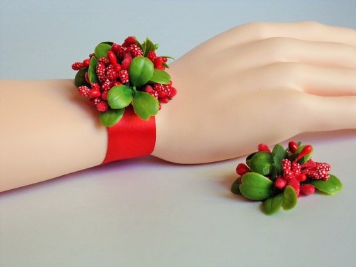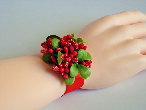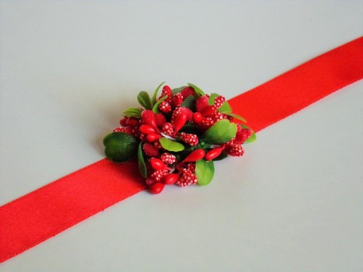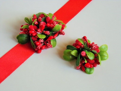 Na innej aukcji dostępne są pasujące do przypinek bukieciki na rękę dla pań.