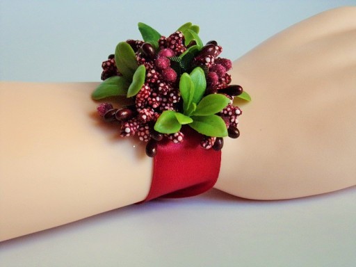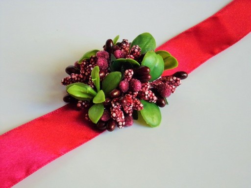 Na rękę wiązany jest za pomocą satynowej tasiemki o szerokości 25mm i długości ok. 40cm.