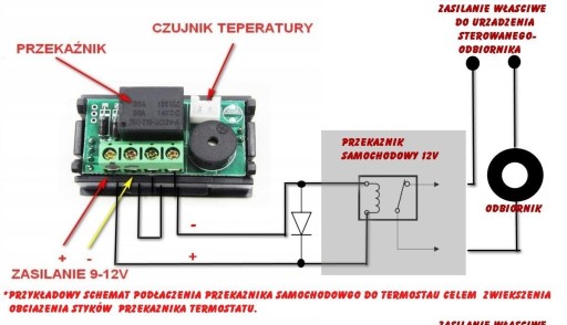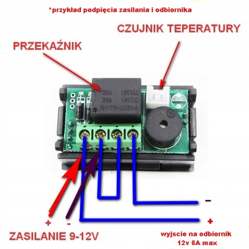 - Wyjście: przekaźnik 20A/14V DC, 5A/250V AC