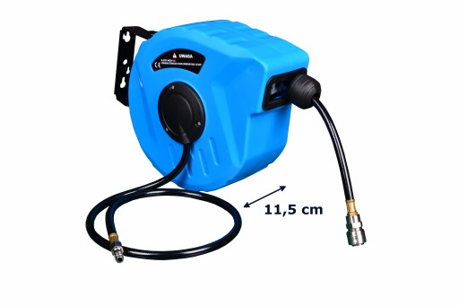 Zwijadło węża pneumatycznego firmy Farys. Posiada ono funkcję automatycznego zwijania i możliwość montażu na ścianie(kołki w zestawie). Idealnie sprawdzi się w miejscach gdzie trzeba zachować porządek.