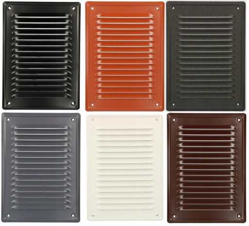 Zastosowanie typowo zewnętrzne, ściany, kominy. Skośne żeberka uniemożliwiają wpadanie deszczu czy śniegu. Kratka posiada siatkę.