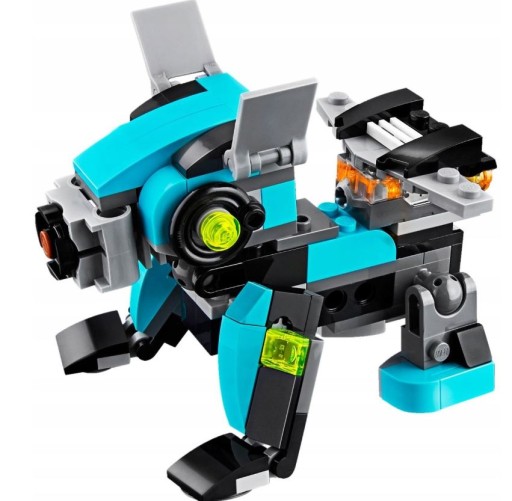 - Zestaw „3 w 1”: pozwala zbudować także model Psa-robota z włączanym plecakiem odrzutowym lub Ptaka-robota o świecących oczach.