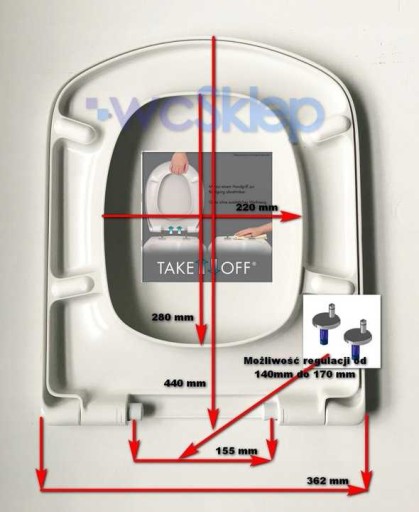 - System szybkiego montażu/demontażu. Szybkie wypinanie pozwala łatwo zdemontować deskę i ułatwić mycie toalety.