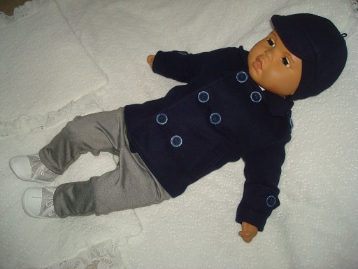 - ELEGANCKI PŁASZCZYK W ŚRODKU OCIEPLANY GRANATOWY Z FLAUSZU ZAPINANY NA GUZICZKI Z KIESZONKAMI