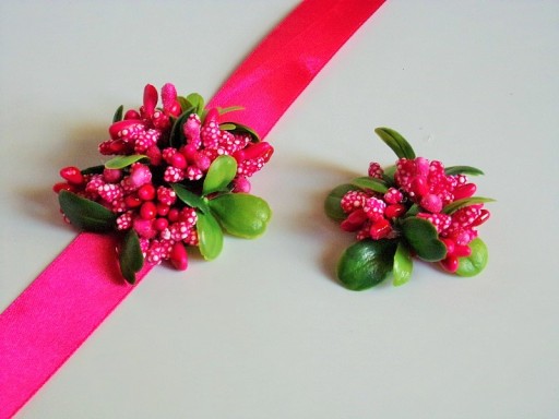Na rękę wiązany jest za pomocą satynowej tasiemki o szerokości 25mm i długości ok. 40cm.