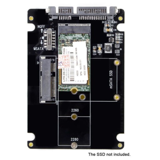 Nowy, wysokiej jakości adapter, który umożliwia umieszczenie dysku SSD: M.2 NGFF SATA lub mSATA w laptopie ze standardowym interfejsem SATA 22 Pin 2.5" lub podpięcie do komputera stacjonarnego.