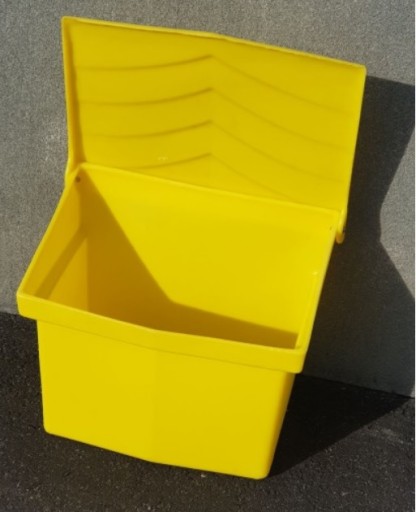 Pojemnik wykonany z tworzywa sztucznego PEHD. Odporny na warunki atmosferyczne i środki chemiczne w tym kwasy, zasady. Może być używany do przechowywania piasku i soli podczas zimy.
