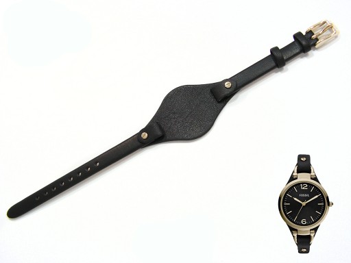Oryginalny pasek do zegarka marki Fossil Georgia do modelu ES3148, wykonany ze skóry naturalnej w kolorze czarnym, z podkładką, gładki, matowy, sprzączka wykonana ze stali nierdzewnej w kolorze złotym.