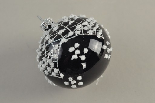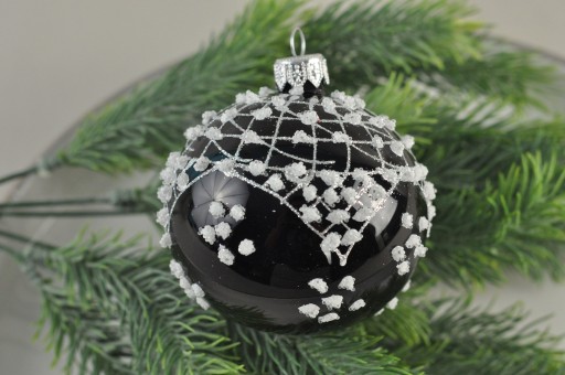Kolor czarny połyskujący ozdobione piękną dekoracją w kolorze białym.