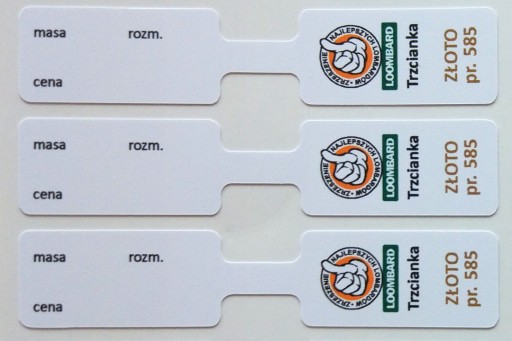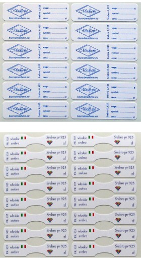 - Przedmiotem oferty są wykonywane na zamówienie etykiety jubilerskie wykonane na śnieżnobiałej, MATOWEJ folii samoprzylepnej 260 µm z nadrukiem pigmentowym pełnokolorowym (CMYK) w rozdzielczości 720x1440 dpi.