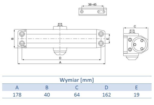 Samozamykacz drzwiowy z blokadą otwarcia (40-65 kg; 830-1100 mm)