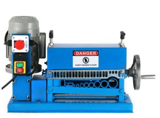 Urządzenie wykonane z solidnej, stalowej blachy waży aż 44kg. Posiada płynną regulację grubości kabla od 1,5 do 38 mm. Dzięki precyzyjnemu cięciu, powierzchnia zostaje dokładnie rozcięta, co pozwala na sprawne usunięcie izolacji. Sprzęt można przymocować do stołu roboczego za pomocą dwóch śrub.