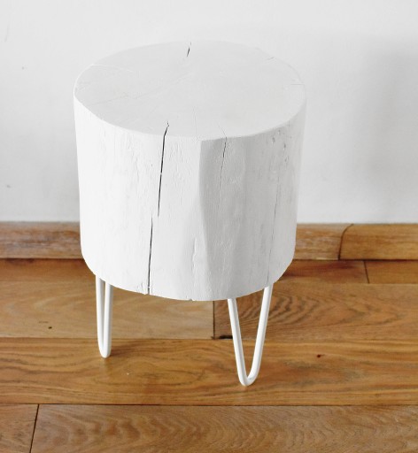 Stolik , pień drewniany , metalowe nogi w białym kolorze NOWOŚĆ !!
