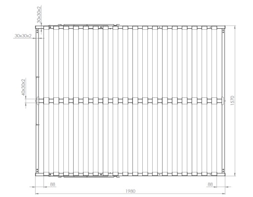 Wymiary zewnętrzne stelażu: 160x198 cm - takie też muszą być minimalne wymiary skrzyni.