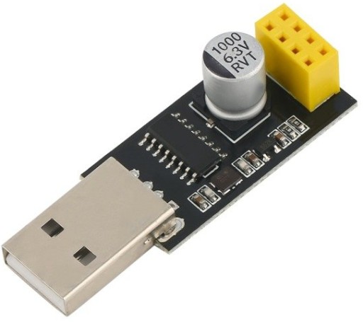 Adapter służący do podłączania Modułu sieciowego WIFI ESP8266 bezpośrednio do USB, co daje nam możliwość programowania i przesyłania danych bezpośrednio z komputera.