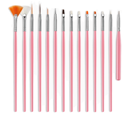 Pędzle do Stylizacji Paznokci . Komplet 15 Sztuk, Róż