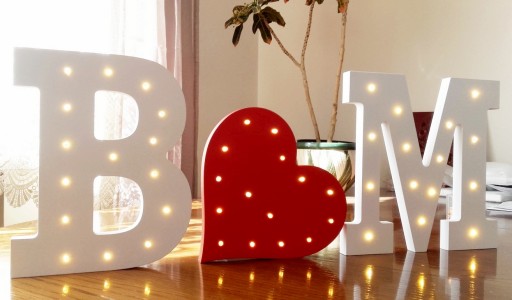 KAŻDA LITERA SERCE LUB ZNAK POSIADA 10 LED, 20 LED DOPŁATA 14 ZŁ OD LITERY. ZASILANA Z 2 BATERII AA Z WYŁĄCZNIKIEM ON OF Z TYŁU LITERY . MOŻEMY RÓWNIEŻ WYKONAĆ NAPIS W WERSJI Z ZASILACZEM 230V -3V dopłata do uzgodnienia