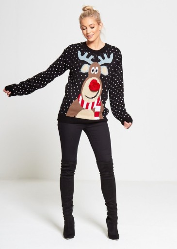 SWETER ŚWIĄTECZNY Z RENIFEREM NOS 3D CZARNY R M/L