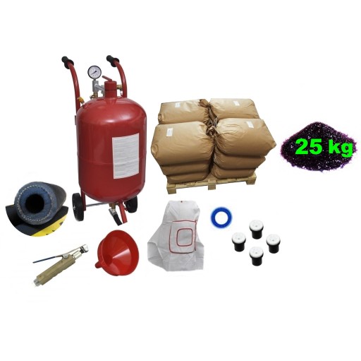 - 25 kg ścierniwa 0,1-0,4 mm, (w odróżnieniu od zwykłego piasku kwarcowego jest to ścierniwo ostrokrawędziowe wielokrotnego użytku )